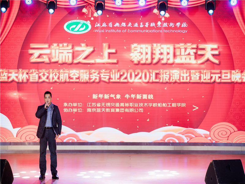 12月9日晚,船舶工程學(xué)院在校大禮堂舉辦了“藍天杯”航空服務(wù)專業(yè)2020匯報演出暨迎元旦晚會,歡送我校首屆航空服務(wù)專業(yè)畢業(yè)生。學(xué)校黨委書記、校長李虎,副校長倪依純,船舶工程學(xué)院院長,船舶工程學(xué)院黨總支副書記,學(xué)校各處室、院部的領(lǐng)導(dǎo),教師代表、學(xué)生代表以及航空服務(wù)專業(yè)的家長代表出席了本次活動。泰州職業(yè)技術(shù)學(xué)院黨委副書記鐘文樂、經(jīng)濟管理學(xué)院黨總支書記展凱,南京藍天教育集團董事長朱正華,副總經(jīng)理安宏林及南京金陵高職校工作站主任劉戀應(yīng)邀出席了本次活動。