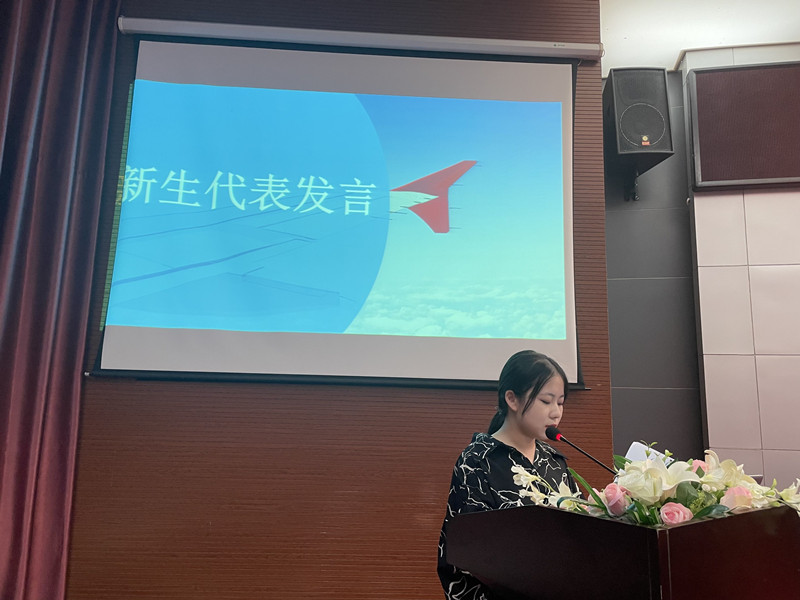 首先,曹瀚允同學(xué)作為新生代表進(jìn)行發(fā)言。她表示新的起點(diǎn),重新出發(fā),培養(yǎng)和提升自己的品德修養(yǎng)和科學(xué)文化素質(zhì),學(xué)會(huì)做人,學(xué)會(huì)求知,學(xué)會(huì)生存,學(xué)會(huì)協(xié)作,學(xué)會(huì)健體,篤學(xué)求真,矢志成才。