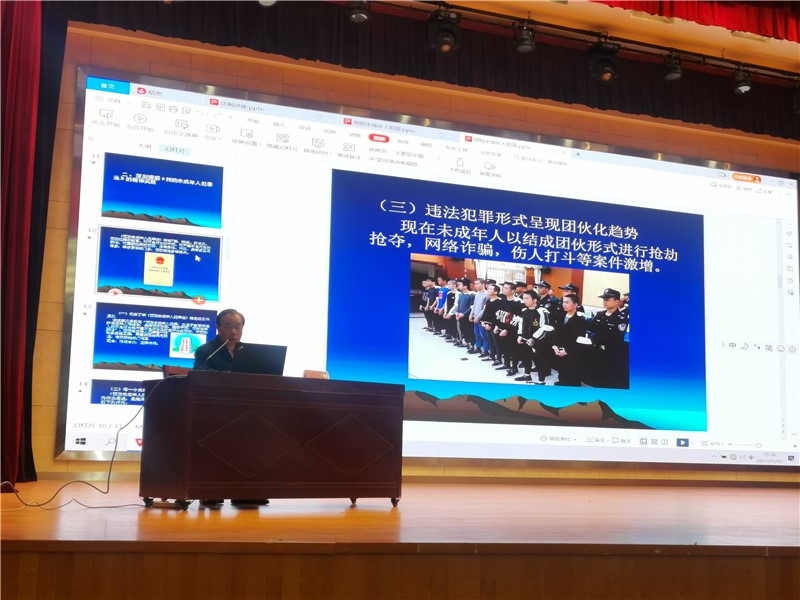 談主任結(jié)合青少年學(xué)生的年齡特點,利用鮮活的故事案例,以通俗易懂的語言,深入淺出地向全體師生講解了導(dǎo)致青少年學(xué)生犯罪的原因以及表現(xiàn)出的不良行為等內(nèi)容,讓學(xué)生明白哪些行為是觸碰不得的法律紅線,深刻領(lǐng)悟知法、守法、用法的重要性,倡導(dǎo)學(xué)生樹立正確的人生觀、價值觀和世界觀,養(yǎng)成良好的生活習(xí)慣,健康成長。