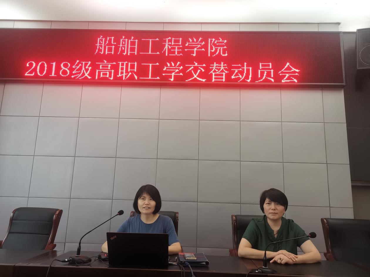 為進(jìn)一步做好2018級高職學(xué)生工學(xué)交替的動(dòng)員工作,明確學(xué)生工學(xué)交替前各項(xiàng)準(zhǔn)備,保證學(xué)生順利完成工學(xué)交替內(nèi)容,6月18日,船舶工程學(xué)院在學(xué)術(shù)報(bào)告廳召開2018級高職學(xué)生工學(xué)交替動(dòng)員會(huì),學(xué)院院長吳志亞、副院長劉方、學(xué)工辦老師、2018級高職全體學(xué)生參加了此次會(huì)議。