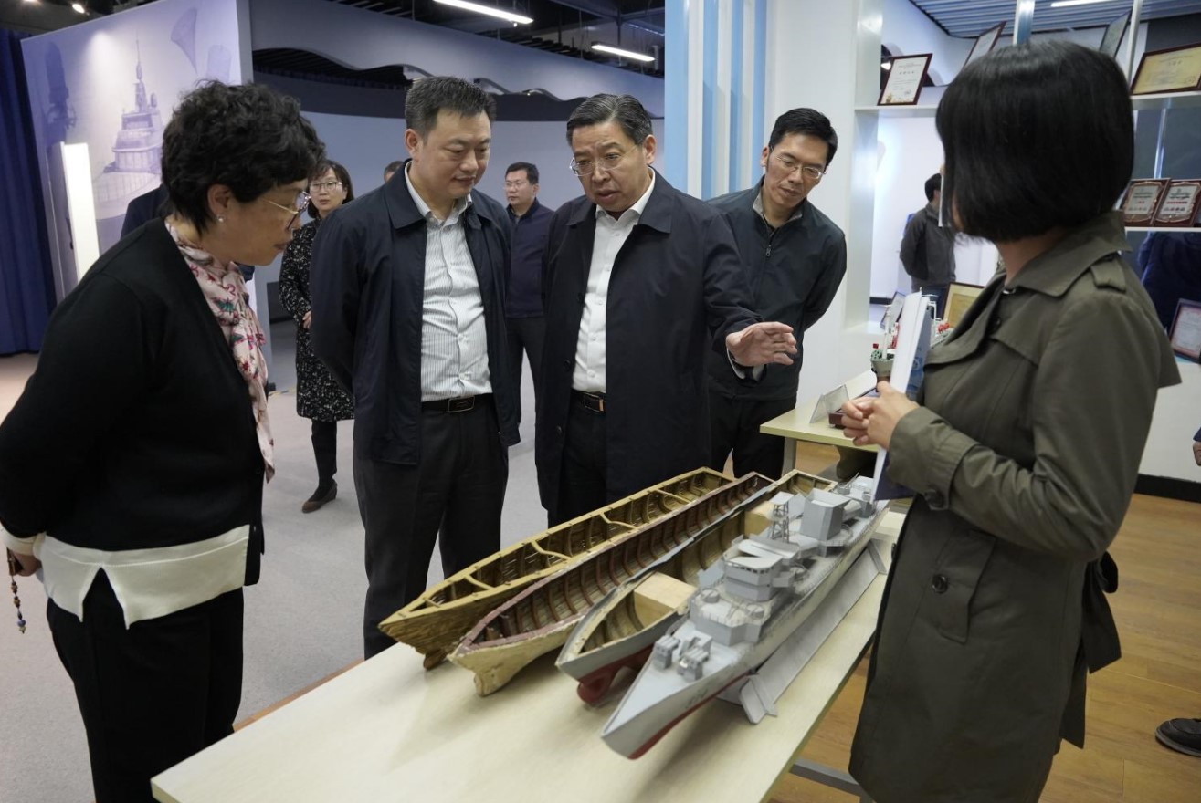 方勝昔副主席一行實(shí)地考察了我校船文化中心、物聯(lián)網(wǎng)技術(shù)實(shí)訓(xùn)基地,詳細(xì)了解我校青少年科普工作開展情況。他充分肯定了學(xué)校在科普工作方面取得的成績,提出了“三色文化”育人,即紅色文化、藍(lán)色海洋文化、特色船文化,并對(duì)下一步工作提出了要求與殷切期盼,他指出我校應(yīng)進(jìn)一步規(guī)范科普基地管理、培養(yǎng)科普工作團(tuán)隊(duì)、完善相關(guān)文字介紹。