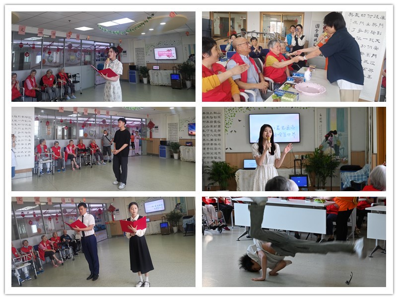 活動(dòng)現(xiàn)場(chǎng),同學(xué)們精心準(zhǔn)備了十余個(gè)節(jié)目,有歌曲《稻香》《這一生的風(fēng)景》、有舞蹈《舞法阻擋》、有朗誦《奮斗正當(dāng)時(shí) 青春獻(xiàn)給黨》等,為老人們帶來(lái)了一場(chǎng)精彩的視聽(tīng)盛宴,老人們不時(shí)拍手,愉悅的心情溢于言表。在聽(tīng)歌識(shí)曲、猜字謎游戲互動(dòng)環(huán)節(jié)之后,老人們一起學(xué)跳了手勢(shì)舞《護(hù)花使者》。隨后,同學(xué)們與老人們聊起家長(zhǎng)里短,傾聽(tīng)來(lái)自他們生活中的趣事兒,拉近和老人之間的距離,努力成為他們的“好朋友”。同學(xué)們把歡聲笑語(yǔ)帶進(jìn)敬老院,給老人送去溫暖,為往日安靜祥和的敬老院增添了許多歡快喜慶的色彩。