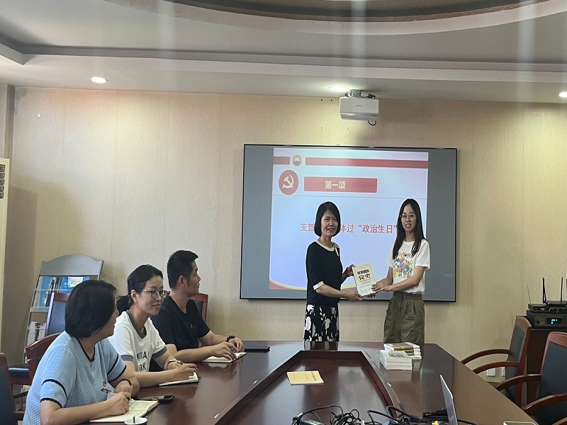 本次主題黨日活動主要分為兩項議程。第一項議程是為支部全體黨員集體過政治生日。此項活動,旨在加強黨員的黨性教育,激發(fā)政治熱情,強化黨員的身份意識和責(zé)任意識,從而增強黨組織的凝聚力和戰(zhàn)斗力。在這個環(huán)節(jié)中,支部書記沈麗蘭同志為每位黨員贈送書籍,希望全體黨員能進一步加強政治理論學(xué)習(xí),提高黨性修養(yǎng)。隨后全體黨員重溫入黨誓詞,號召黨員同志們要時刻保持清醒的政治覺悟和堅定的政治立場。本次主題黨日的第二項議程是由沈麗蘭同志為全體黨員上黨紀(jì)學(xué)習(xí)教育專題黨課,黨課的主題是“全面從嚴(yán)治黨,持續(xù)正風(fēng)肅紀(jì)”。黨課中,黨員同志們深入學(xué)習(xí)了習(xí)近平總書記關(guān)于黨的自我革命的重要思想,學(xué)習(xí)了新修訂的《中國共產(chǎn)黨紀(jì)律處分條例》,集中觀看了《黨紀(jì)故事之有紀(jì)律方有鐵軍》教育視頻。在黨課的最后,號召全體黨員要加強學(xué)習(xí)、堅守底線、不越紅線、爭做合格黨員。