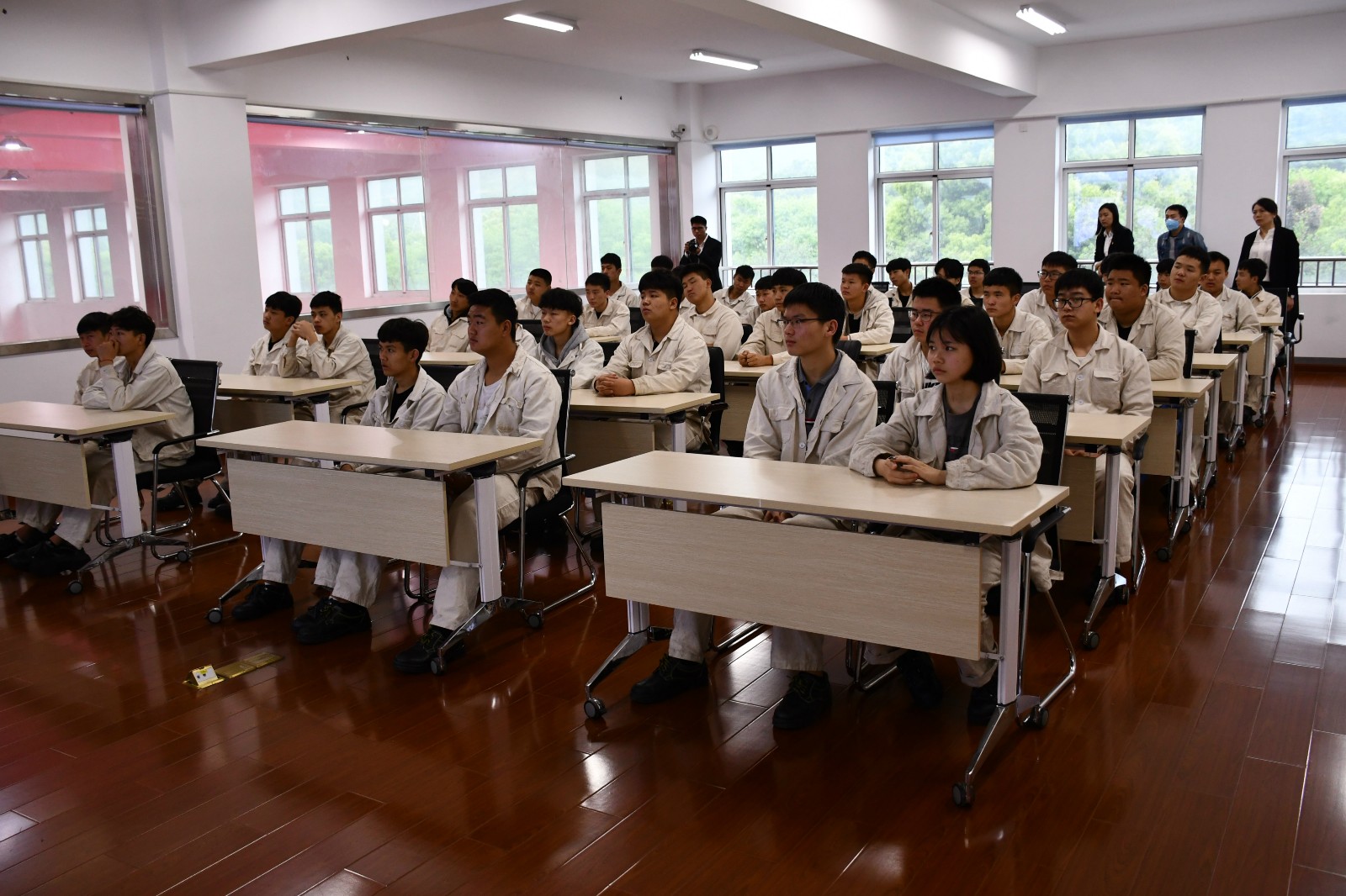 邱明輝主任通過案例詳細講解了氣體保護焊焊接作業(yè)規(guī)程,從氣體流量大小對焊接的影響到焊接參數(shù)設(shè)定,再到焊接姿勢、焊槍角度對焊縫質(zhì)量及外觀成形的影響,焊接專業(yè)的同學(xué)們聽得格外認真。理論交流結(jié)束后,繆曉泉實驗員給同學(xué)們演示了各種情況下的焊縫的成形情況。這場精彩的講座在同學(xué)們熱烈的掌聲中圓滿結(jié)束。