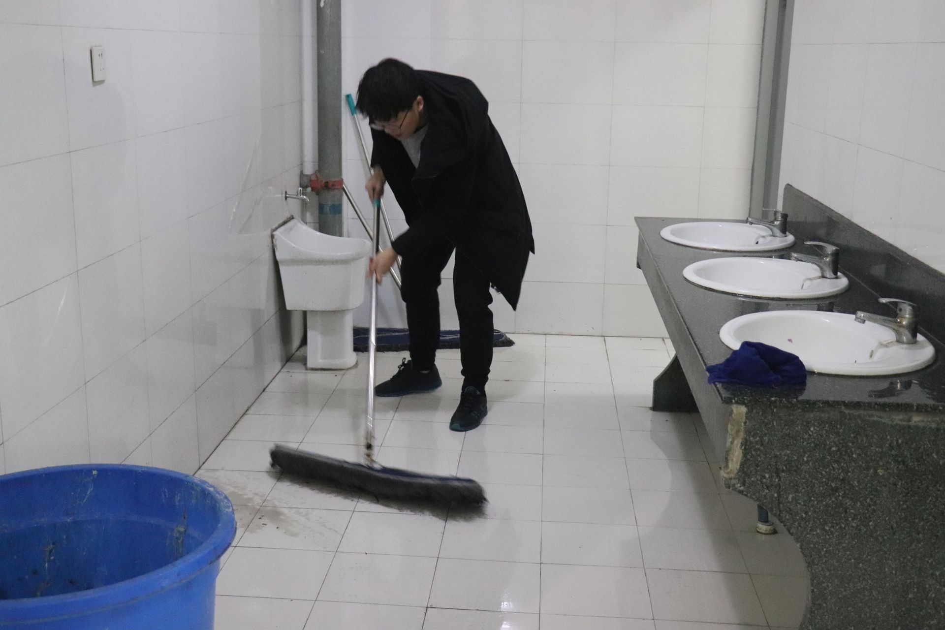 151111班團支部的同學在結束一天的實習后,團支書提出今天是雷鋒日,不如大家一塊將車間的角角落落仔細打掃打掃,話音剛落,已經有幾個同學投入到打掃的行動中。