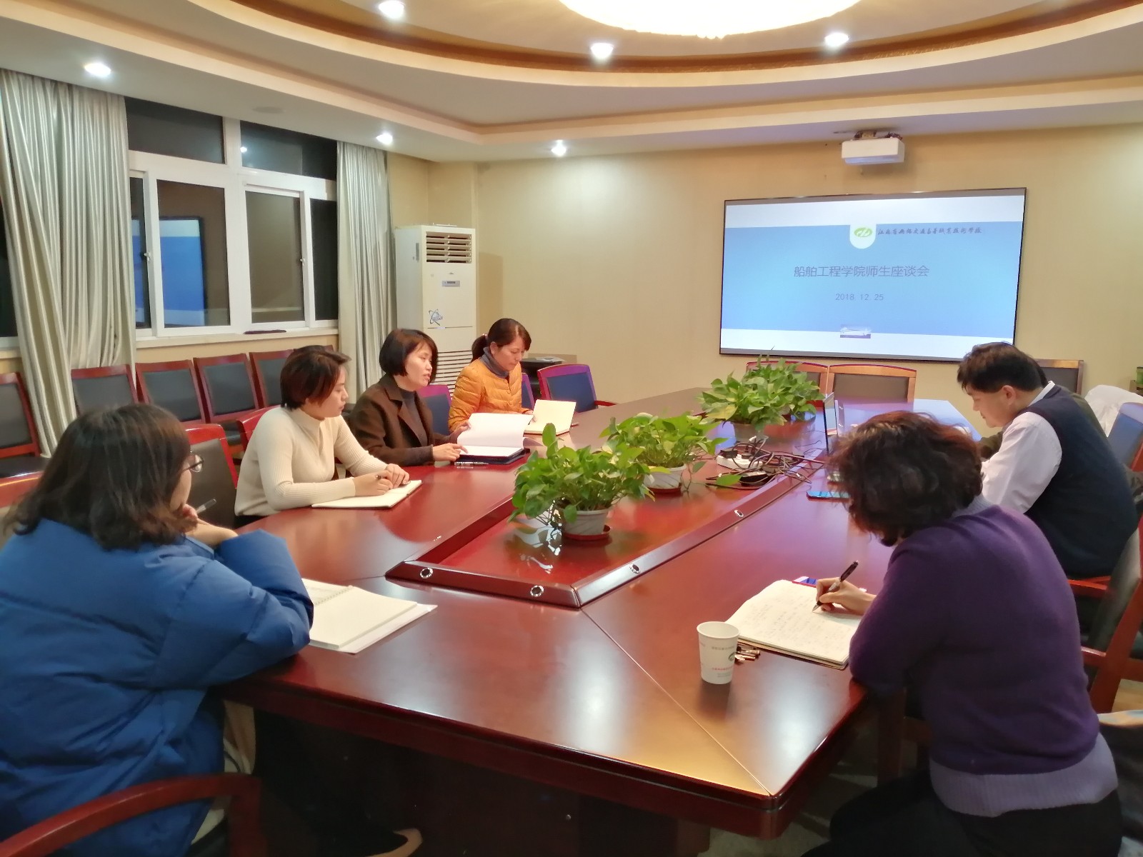 ?2018年12月25日下午,副校長(zhǎng)邢勇一行3人赴船舶工程學(xué)院走訪調(diào)研。校工會(huì)主席毛蘭霞,學(xué)生工作處副處長(zhǎng)熊睿等陪同參加調(diào)研活動(dòng)。