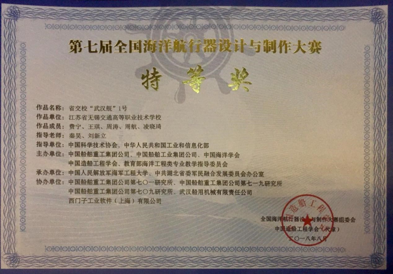 ? ? 第七屆全國(guó)海洋航行器設(shè)計(jì)與制作大賽于8月10日—8月12日在中國(guó)人民解放軍海軍工程大學(xué)隆重舉行,來(lái)自上海交通大學(xué)、哈爾濱工業(yè)大學(xué)、華中科技大學(xué)、西北工業(yè)大學(xué)等全國(guó)51所院校的84件名船名艦?zāi)P头抡孀髌泛?4件船模競(jìng)速作品在海工大體育館展開(kāi)了評(píng)比,我校船舶工程學(xué)院深藍(lán)社成員們經(jīng)過(guò)三個(gè)月的精心制作,在原有的制作工藝上不斷創(chuàng)新,突破制作技術(shù)上難點(diǎn),經(jīng)過(guò)了2天的評(píng)比篩選,我校名船名艦?zāi)P头抡孀髌贰拔錆h艦”1號(hào)榮獲了特等獎(jiǎng),“武漢艦”2號(hào)榮獲了二等獎(jiǎng),船模競(jìng)速作品省交校1號(hào)榮獲了能耗測(cè)試獎(jiǎng),經(jīng)過(guò)這次比賽,學(xué)生們交流了制作心得,展示了制作水平,堅(jiān)定信念,勇往直前,為學(xué)校在行業(yè)中贏得了良好的聲譽(yù)。