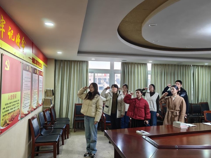 隨后,在鮮紅的黨旗下,全體黨員佩戴黨徽,舉起右拳,由沈麗蘭同志領(lǐng)誓,莊嚴(yán)重溫入黨誓詞。鏗鏘有力的誓言既是對(duì)入黨初心的回溯與叩問(wèn),也是對(duì)未來(lái)使命的承諾與踐行。通過(guò)重溫誓詞,黨員們?cè)俅胃惺艿饺朦h時(shí)的莊嚴(yán)承諾和堅(jiān)定決心,進(jìn)一步增強(qiáng)了“四個(gè)意識(shí)”、堅(jiān)定了“四個(gè)自信”、做到了“兩個(gè)維護(hù)”,凝聚起“為黨和人民事業(yè)奮斗終身”的共識(shí)與力量。