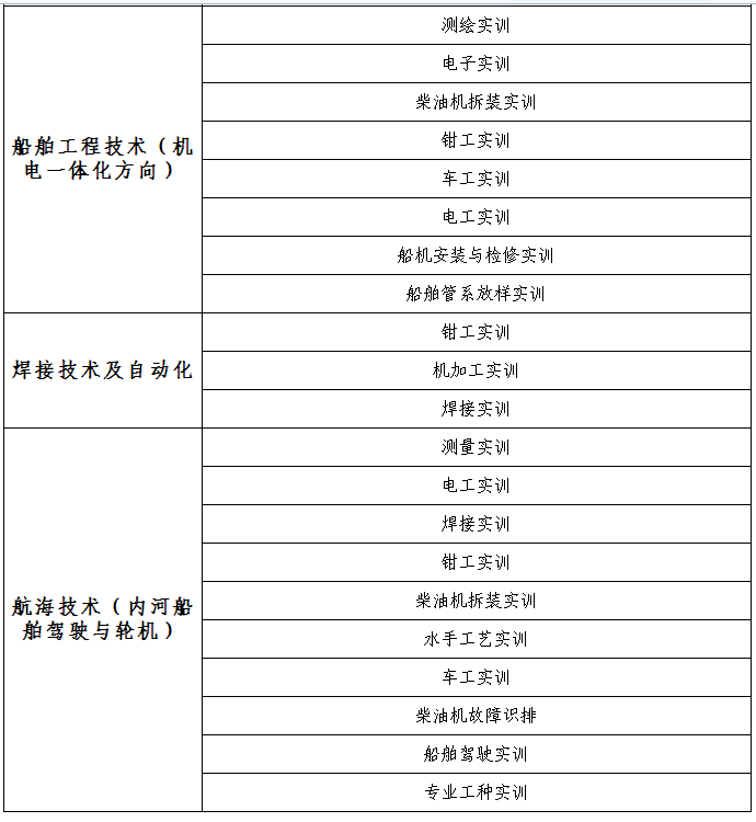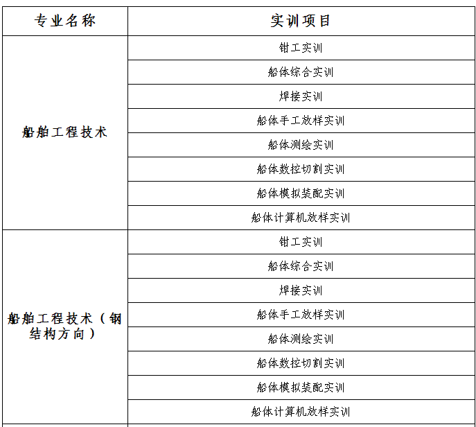 船舶工程學(xué)院各專業(yè)實訓(xùn)項目