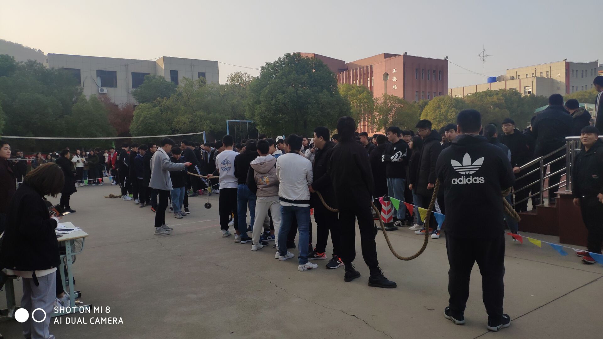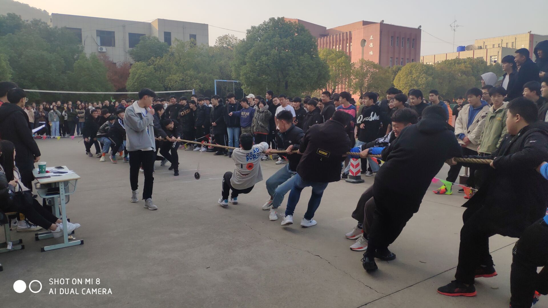 12月11日,我院學(xué)生會體育部本著“團結(jié)一致,友誼第一,比賽第二”的原則,舉行了此次拔河比賽。此次比賽以班級為單位,每個班級選出男生十名,通過淘汰賽規(guī)則最終決出冠軍、亞軍和季軍3個名次。我們本著公平、公正、公開的原則,對各班進行評比。每個班級都信心滿滿,激情 四射,每個參賽選手都昂首挺胸,場面熱鬧非凡,一條麻繩靜靜地躺在場地中央,等待它的是一場場激烈的戰(zhàn)斗。???