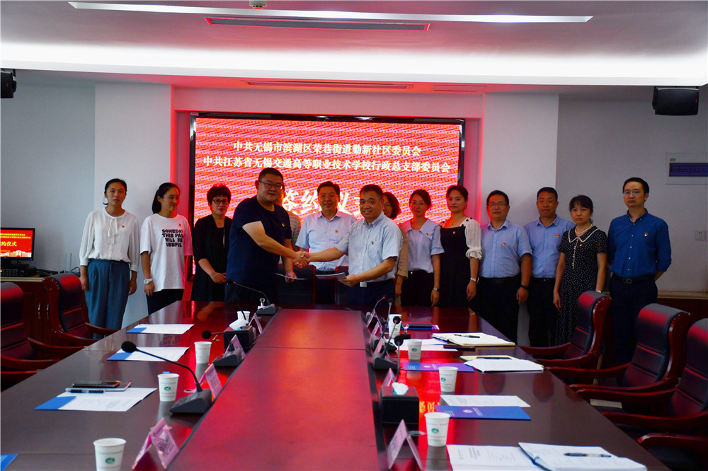 為深入貫徹落實(shí)習(xí)近平總書記在黨史學(xué)習(xí)教育動員大會上的重要講話精神,結(jié)合“兩在兩同”建新功行動,強(qiáng)化黨建引領(lǐng)作用,發(fā)揮學(xué)校和地方雙方優(yōu)勢,著力構(gòu)建共建促發(fā)展新模式。9月14日,學(xué)校行政黨總支與無錫市濱湖區(qū)榮巷街道勤新社區(qū)舉行黨建結(jié)對共建簽約儀式,學(xué)校黨委書記、校長李虎出席簽約儀式。校黨委副書記、紀(jì)委書記朱雨蘭,勤新社區(qū)黨委書記張樂天共同參加了此次活動。