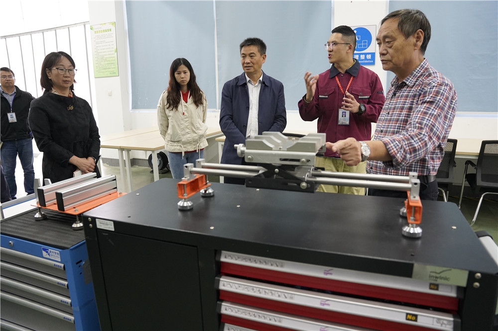 考察組一行還實地考察了工業(yè)機器人實訓基地、交通運輸物聯(lián)網(wǎng)技術(shù)實訓基地、新能源汽車實訓基地、江蘇省交通運輸行業(yè)船文化中心、校園書店、校史館等校內(nèi)實訓基地和場所,對學校專業(yè)文化、校史校情教育、文化活動開展等情況予以贊賞。