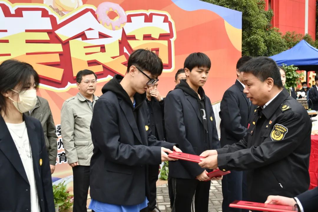 開幕式上,陳局長為6名學(xué)生頒發(fā)食品安全監(jiān)督員聘書。