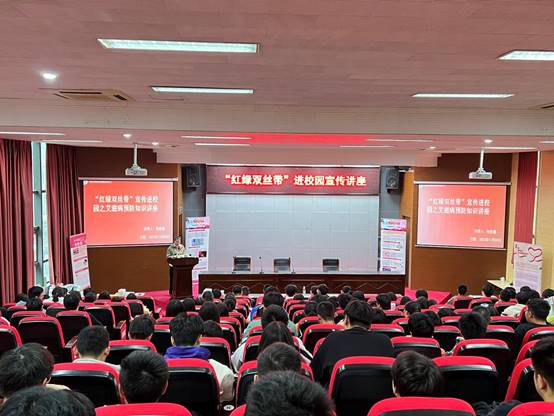 為了進一步提高我校學生艾滋病、結(jié)核病的防治意識,維護大學生的生命健康,推動學校防艾、防結(jié)核工作深入開展。根據(jù)《無錫市濱湖區(qū)疾病預(yù)防控制中心“紅綠雙絲帶”宣傳進校園活動實施方案》文件精神,我校于2023年11月8日下午邀請無錫市濱湖區(qū)疾控中心周俊燕主任和她帶領(lǐng)的志愿者團隊在學術(shù)報告廳做艾滋病與結(jié)核病防治知識宣講。200名左右學生代表參加了本次宣講活動,活動由校工會和校團委共同主持參與。