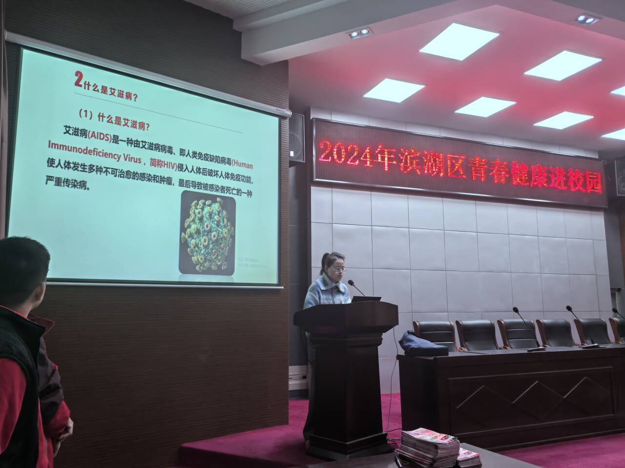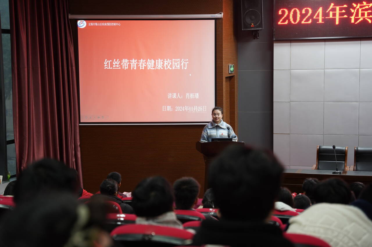 為了進(jìn)一步提高我校學(xué)生對艾滋病、毒品的防治意識,向廣大師生傳授艾滋病、毒品防治知識,維護(hù)學(xué)生的生命健康,推動學(xué)校防治艾滋病、防毒品工作深入開展。學(xué)校于2024年11月25日下午邀請無錫市濱湖區(qū)疾控中心周俊燕主任、肖櫪璠醫(yī)生在學(xué)術(shù)報(bào)告廳進(jìn)行濱湖區(qū)青春健康進(jìn)校園《艾滋病與毒品防治知識》宣傳講座。150余名學(xué)生參加了本次宣講活動。