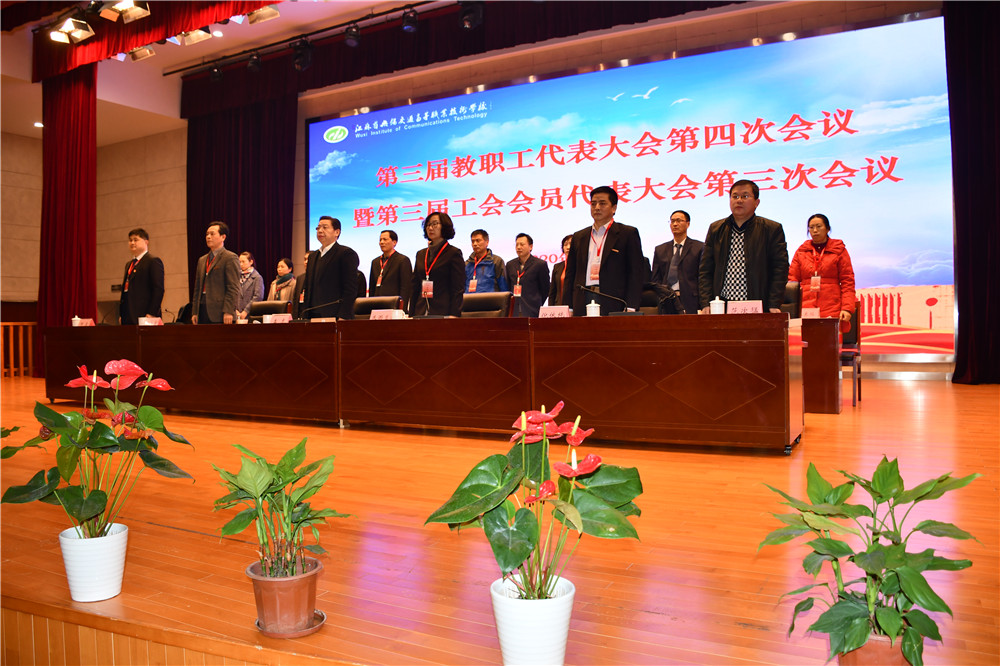 2020年1月14日,我校三屆四次教職工代表大會(huì)暨三次工會(huì)會(huì)員代表大會(huì)在大禮堂隆重召開(kāi)。校黨委書記李虎、副校長(zhǎng)耿興華、倪依純、邢勇出席了會(huì)議。本次會(huì)議共有75名正式代表、3名特邀代表、8名列席代表參加了大會(huì)。大會(huì)由校黨委副書記、紀(jì)委書記朱雨蘭主持。