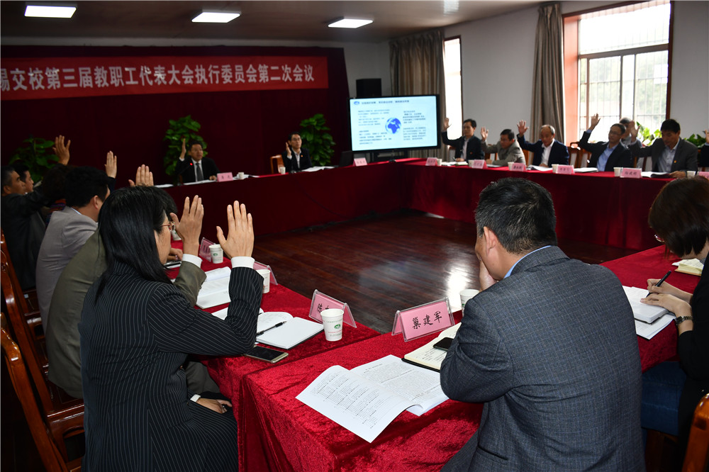 11月7日,學(xué)校召開(kāi)第三屆教職工代表大會(huì)執(zhí)行委員會(huì)第二次會(huì)議。教職工代表大會(huì)執(zhí)委會(huì)成員出席會(huì)議,全體中層干部及部分教師代表等近50人列席了會(huì)議。學(xué)校黨委書(shū)記李虎主持會(huì)議。