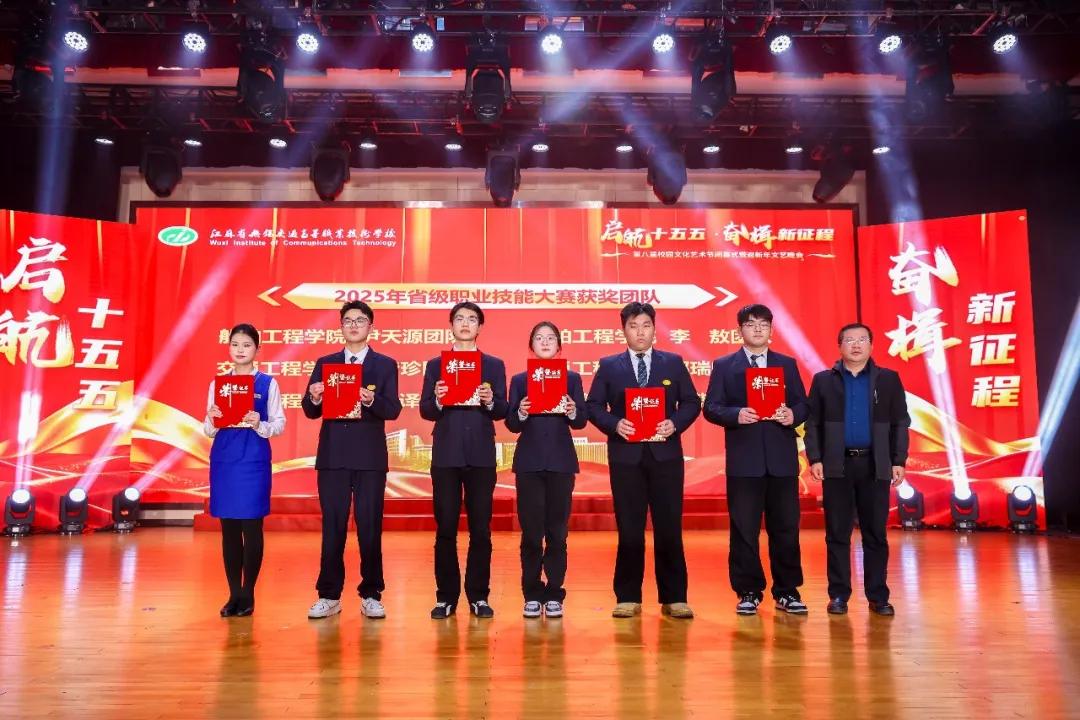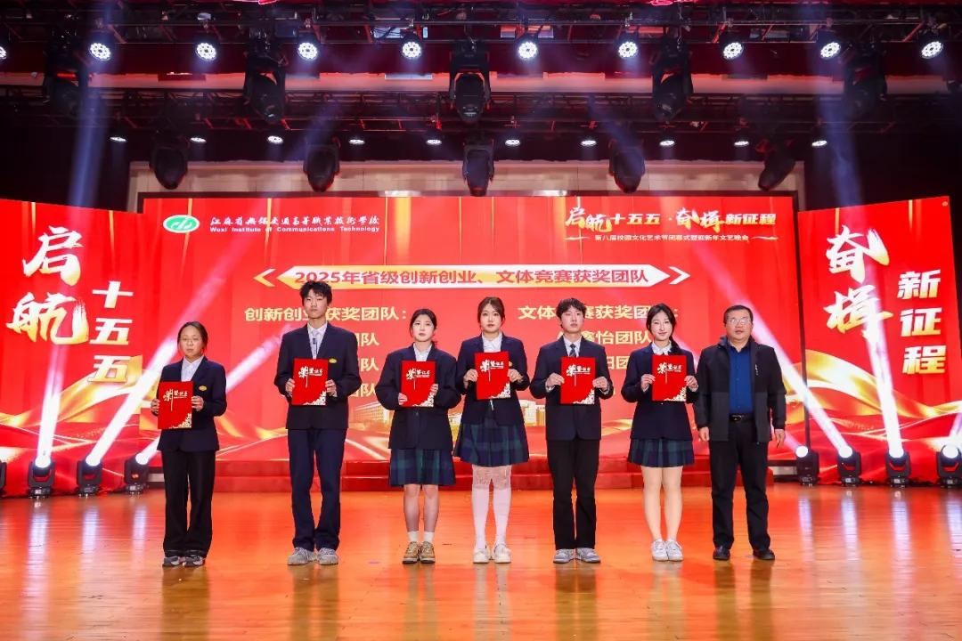 晚會(huì)首先舉行頒獎(jiǎng)儀式。校領(lǐng)導(dǎo)先后為2025年度在市級(jí)以上班主任能力大賽、省級(jí)以上創(chuàng)新創(chuàng)業(yè)大賽與職業(yè)技能競(jìng)賽、文體藝術(shù)賽事中榮獲佳績(jī)的師生代表,以及國家獎(jiǎng)學(xué)金、校長(zhǎng)獎(jiǎng)學(xué)金、市級(jí)以上“三好學(xué)生”“優(yōu)秀學(xué)生干部”獲得者頒獎(jiǎng)。一年來,學(xué)校堅(jiān)持立德樹人、以文化人,師生在各級(jí)各類平臺(tái)屢獲殊榮,展現(xiàn)了扎實(shí)的專業(yè)功底、出色的綜合素養(yǎng)與昂揚(yáng)的精神風(fēng)貌。