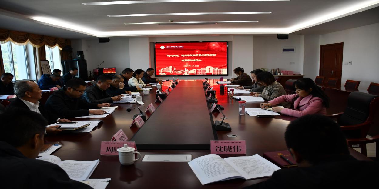 為學(xué)習(xí)貫徹習(xí)近平總書記重要講話精神,堅定黨員干部初心使命、理想信念,根據(jù)學(xué)校黨史學(xué)習(xí)教育安排,11月11日下午,學(xué)校組織召開了“我心向黨、我為學(xué)校高質(zhì)量發(fā)展作貢獻(xiàn)”黨員干部座談會。學(xué)校黨委書記、校長李虎出席會議并作講話。會議由學(xué)校黨委副書記、五級職員朱雨蘭主持。