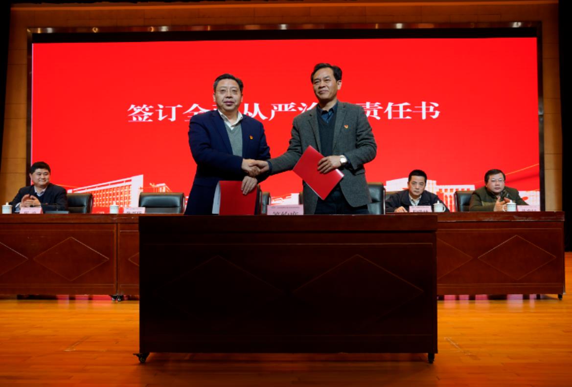 會上,學(xué)校紀(jì)委書記邢勇作題為《忠誠履職盡責(zé) 建設(shè)廉潔校園 為學(xué)校高質(zhì)量發(fā)展提供堅強政治保證》的工作報告。集中觀看了警示教育專題片《別讓“自作聰明”毀了人生》。李虎書記與黨委委員簽訂了2022年全面從嚴(yán)治黨主體責(zé)任書。