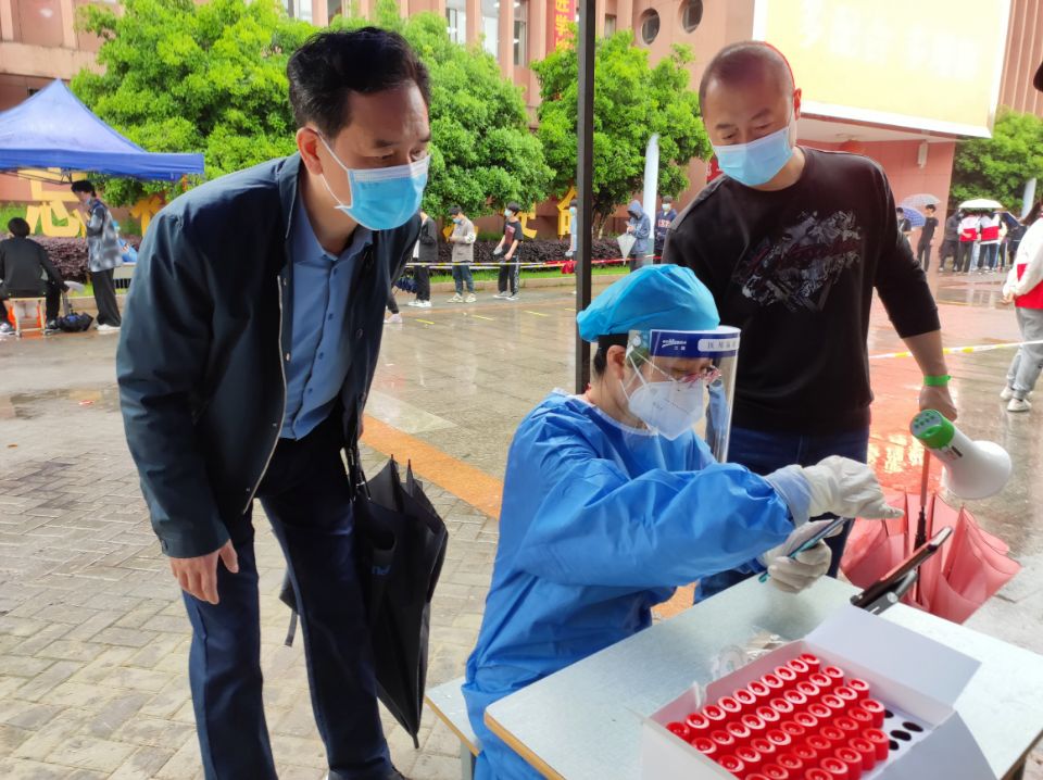 “明天開展全員核酸,請相關(guān)人員做好準(zhǔn)備。”每天晚上,學(xué)校防控辦提前發(fā)布第二天工作安排,被點(diǎn)名的成員紛紛回復(fù)“收到”。他們是一支由學(xué)校醫(yī)療辦和教師組成的臨時支援隊伍,是師生在核酸檢測現(xiàn)場的“大白”,負(fù)責(zé)核酸采樣;他們是核酸檢測現(xiàn)場的“小藍(lán)”,負(fù)責(zé)核酸檢測掃碼、信息登記以及現(xiàn)場人員組織和秩序維護(hù)。