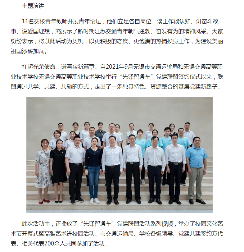 中國江蘇網:無錫交通高等職業(yè)技術學校舉辦“先鋒智通車”黨建聯(lián)盟系列活動