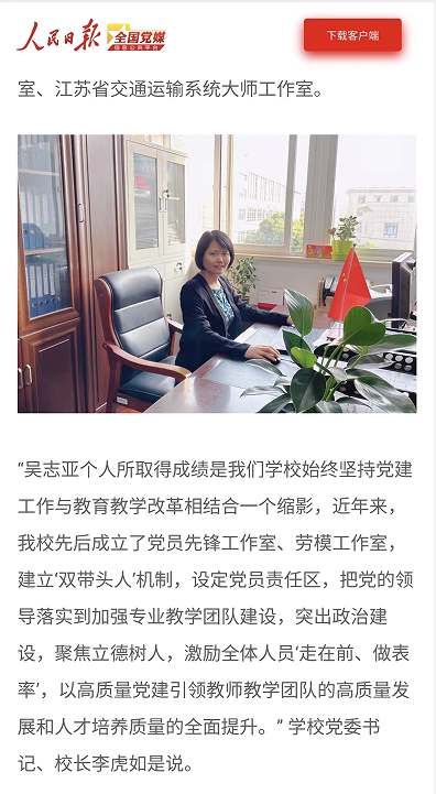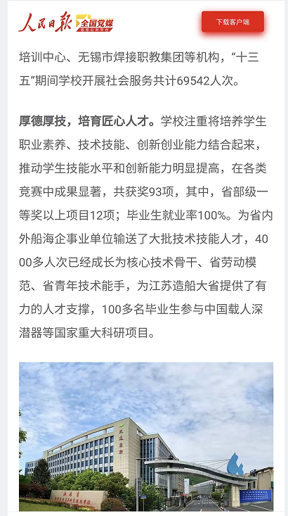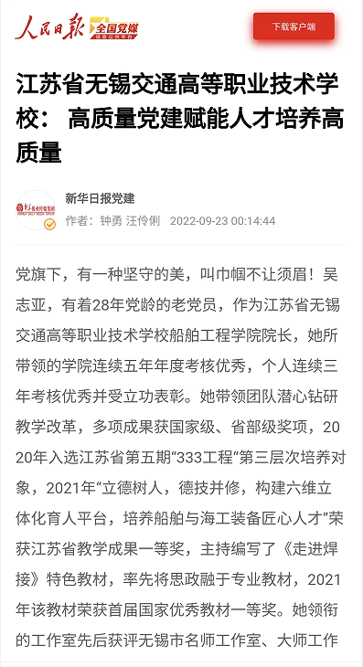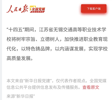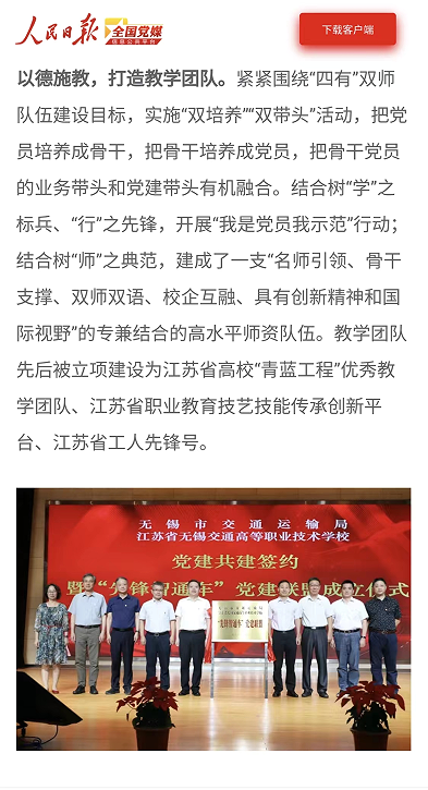 人民日報全國黨媒:江蘇省無錫交通高等職業(yè)技術(shù)學(xué)校: 高質(zhì)量黨建賦能人才培養(yǎng)高質(zhì)量