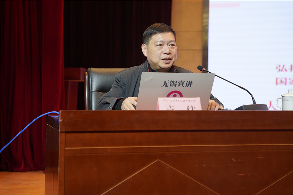 動(dòng)員會(huì)上,學(xué)校還邀請(qǐng)了無錫市委講師團(tuán)副團(tuán)長袁偉為青年師生作輔導(dǎo)報(bào)告。他以《乘風(fēng)破浪 行穩(wěn)致遠(yuǎn)——以中國式現(xiàn)代化全面推進(jìn)中華民族偉大復(fù)興》為題,圍繞大會(huì)概況、理論闡釋和總結(jié)概括三個(gè)方面對(duì)黨的二十大報(bào)告作了深入系統(tǒng)的解讀與闡釋。授課內(nèi)容系統(tǒng)全面、內(nèi)涵豐富、分析透徹、契合實(shí)踐,為全體青年師生深刻理解和準(zhǔn)確把握黨的二十大精神提供了思路和指導(dǎo),大家專注聽講,認(rèn)真記錄,受益匪淺。