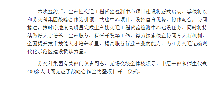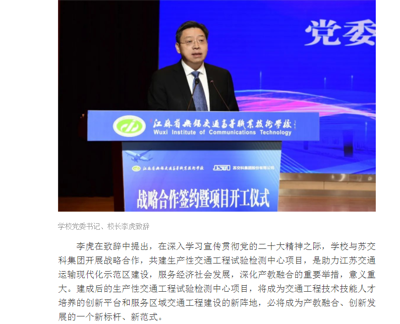 今日頭條:無錫交校與蘇交科集團舉行戰(zhàn)略合作簽約暨生產(chǎn)性試驗檢測中心項目開工儀式
