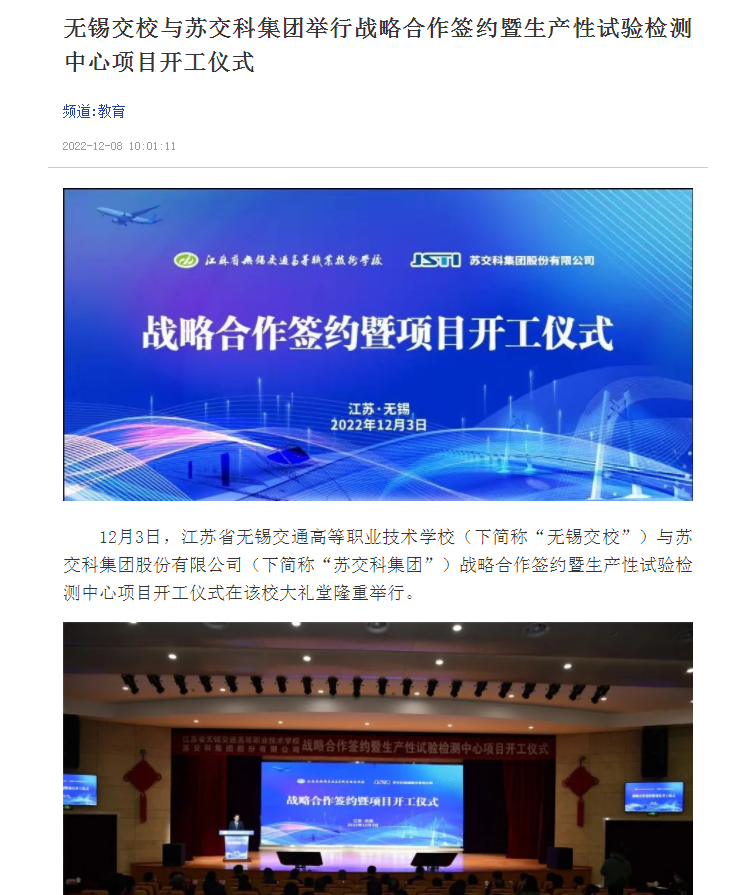 無錫博報:無錫交校與蘇交科集團共建生產(chǎn)性交通工程試驗檢測中心項目正式啟動(視頻版)