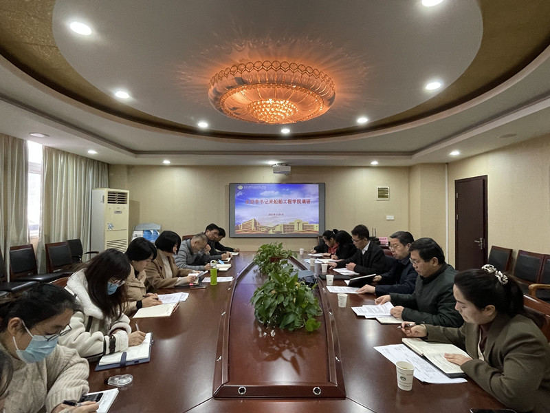 12月8日,學(xué)校黨委書記李虎到船舶工程學(xué)院調(diào)研指導(dǎo)工作,聽取學(xué)院2022年的主要工作、取得的主要成效以及下一步工作思路。校黨委委員、副校長范次猛陪同調(diào)研,組織人事處、教務(wù)處、學(xué)工處等部門負責同志、船舶工程學(xué)院領(lǐng)導(dǎo)班子及內(nèi)設(shè)機構(gòu)負責人參加會議。
