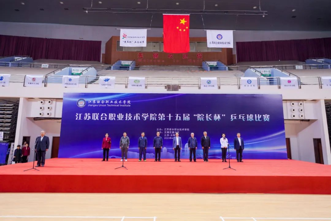 4月22日,由江蘇聯(lián)合職業(yè)技術(shù)學(xué)院主辦,學(xué)校承辦的江蘇聯(lián)合職業(yè)技術(shù)學(xué)院第十五屆“院長(zhǎng)杯”乒乓球比賽在無(wú)錫新體隆重開(kāi)幕。江蘇省交通運(yùn)輸行業(yè)黨委副書(shū)記、一級(jí)巡視員汪祝君,江蘇聯(lián)合職業(yè)技術(shù)學(xué)院黨委書(shū)記夏成滿,江蘇聯(lián)合職業(yè)技術(shù)學(xué)院院長(zhǎng)、黨委副書(shū)記劉克勇,無(wú)錫市教育局副局長(zhǎng)任克奇,江蘇聯(lián)合職業(yè)技術(shù)學(xué)院黨委委員、副院長(zhǎng)陶向東、李?lèi)?ài)芬,江蘇聯(lián)合職業(yè)技術(shù)學(xué)院黨委委員張益飛,學(xué)校黨委書(shū)記、校長(zhǎng)李虎,比賽裁判長(zhǎng)、國(guó)際級(jí)裁判賈文等領(lǐng)導(dǎo)出席開(kāi)幕式。開(kāi)幕式由江蘇聯(lián)合職業(yè)技術(shù)學(xué)院黨委副書(shū)記、紀(jì)委書(shū)記沈世江主持。