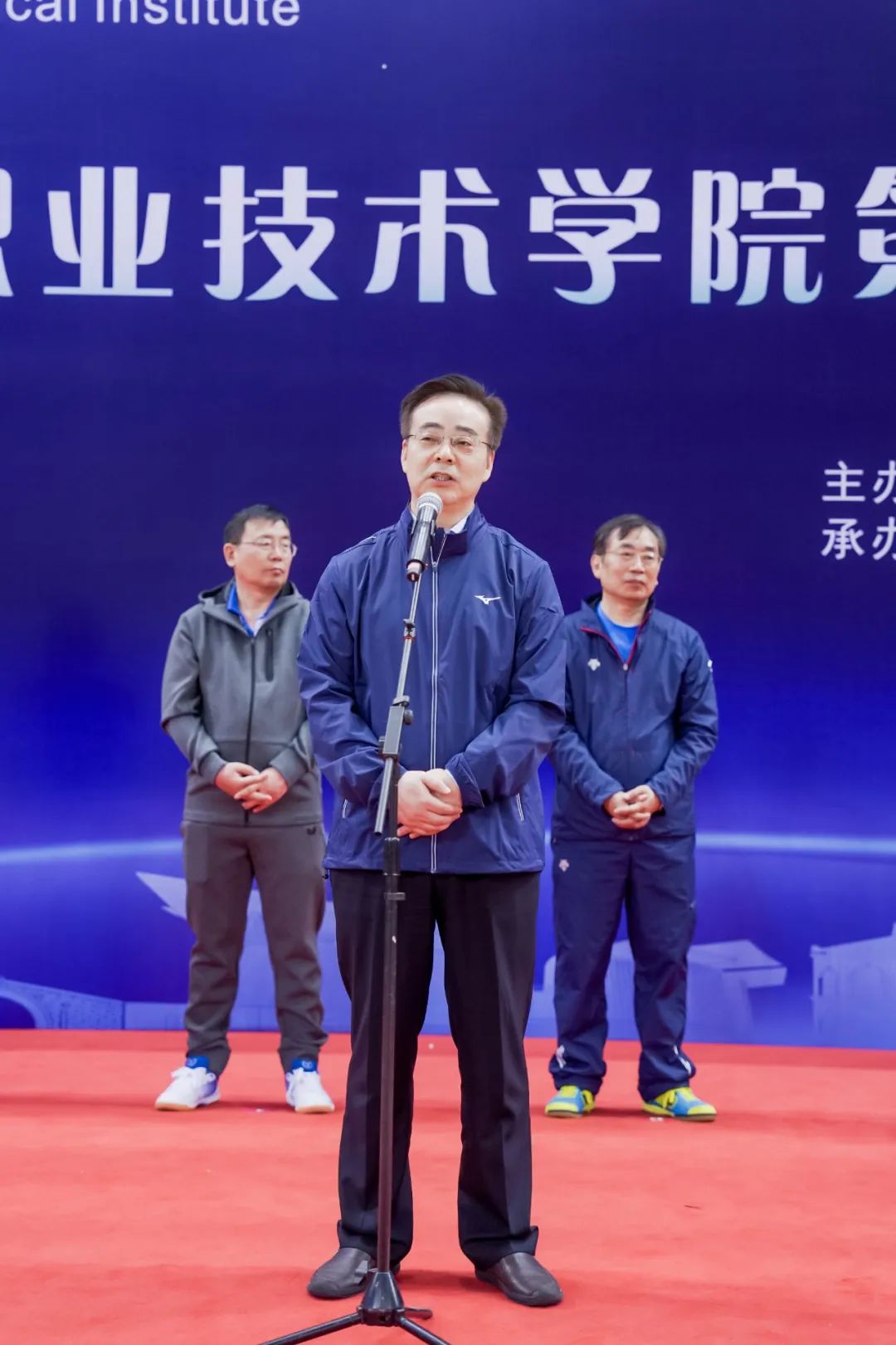 劉克勇代表大賽組委會(huì)對(duì)比賽的順利舉辦表示熱烈祝賀,對(duì)承辦單位的辛勤付出表示感謝。近年來(lái)學(xué)院上下在黨的全面領(lǐng)導(dǎo)下,事業(yè)發(fā)展穩(wěn)中有進(jìn),內(nèi)涵建設(shè)亮點(diǎn)紛呈,五年制高職取得長(zhǎng)足發(fā)展。他希望本屆“院長(zhǎng)杯”乒乓球比賽能夠充分展示各辦學(xué)單位領(lǐng)導(dǎo)班子的活力,展示各位校領(lǐng)導(dǎo)的健康體魄和體育運(yùn)動(dòng)風(fēng)采,提高各辦學(xué)單位的凝聚力和向心力,助力各分院以更加飽滿的熱情推進(jìn)江蘇五年制高職高質(zhì)量發(fā)展。