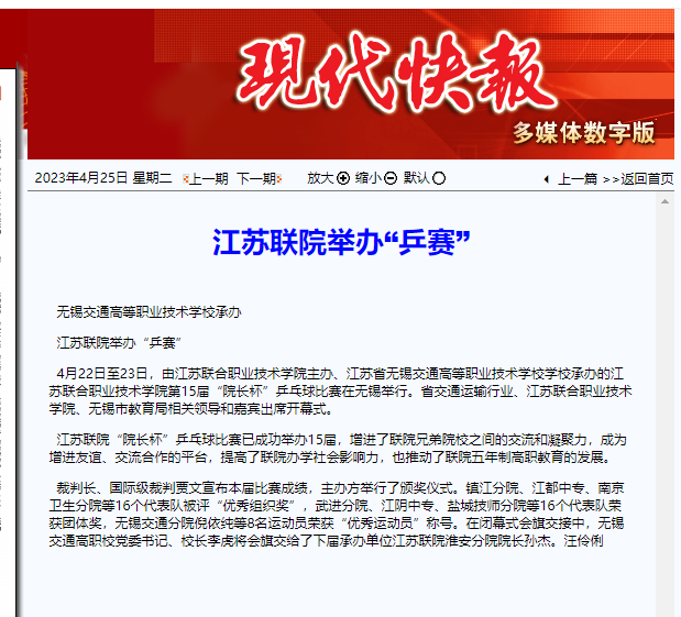 現(xiàn)代快報(bào):江蘇聯(lián)院舉辦“乒賽”
