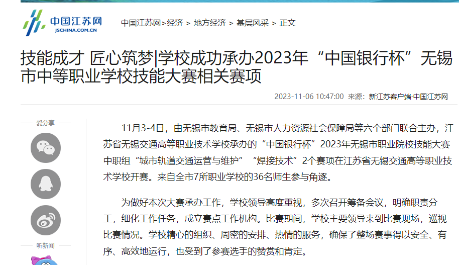 中江網(wǎng):技能成才 匠心筑夢|學(xué)校成功承辦2023年“中國銀行杯”無錫市中等職業(yè)學(xué)校技能大賽相關(guān)賽項(xiàng)