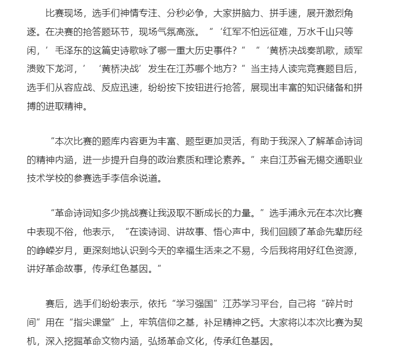 學(xué)習(xí)強(qiáng)國:2023“革命文物看江蘇”革命詩詞知多少挑戰(zhàn)賽總決賽圓滿舉辦