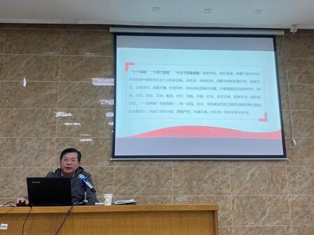 專題黨課上,范次猛副校長解讀了習(xí)近平新時(shí)代中國特色社會(huì)主義思想內(nèi)涵,強(qiáng)調(diào)了開展學(xué)習(xí)貫徹習(xí)近平新時(shí)代中國特色社會(huì)主義思想主題教育的總要求和根本任務(wù),結(jié)合學(xué)校實(shí)際,闡述了學(xué)校從“領(lǐng)航”走向“雙優(yōu)”的生態(tài)建構(gòu)。