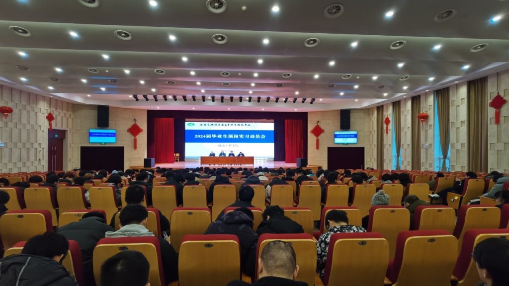 為進(jìn)一步明確學(xué)生崗位實(shí)習(xí)意義及要求,強(qiáng)調(diào)學(xué)生崗位實(shí)習(xí)安全,明悉崗位實(shí)習(xí)安全注意事項(xiàng),確保頂崗實(shí)習(xí)安全,2月24日下午,機(jī)電工程學(xué)院在學(xué)校大禮堂召開了2024屆畢業(yè)生頂崗實(shí)習(xí)動(dòng)員大會(huì)。會(huì)議由副院長(zhǎng)俞浩主持,機(jī)電工程學(xué)院全體領(lǐng)導(dǎo)、畢業(yè)班班主任、輔導(dǎo)員及全體2024屆畢業(yè)生參加了會(huì)議。