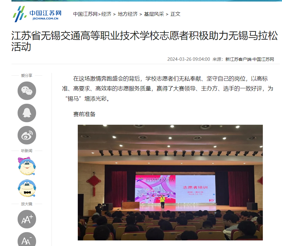 中江網(wǎng):江蘇省無(wú)錫交通高等職業(yè)技術(shù)學(xué)校志愿者積極助力無(wú)錫馬拉松活動(dòng)