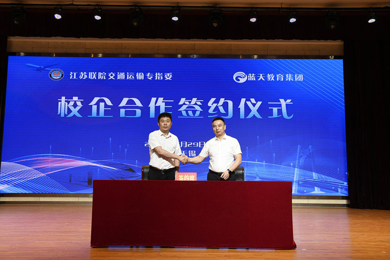 會上,江蘇聯(lián)院交通運輸專指委主任委員李進(jìn)與南京藍(lán)天教育集團(tuán)有限公司董事長朱正華簽署校企合作協(xié)議。