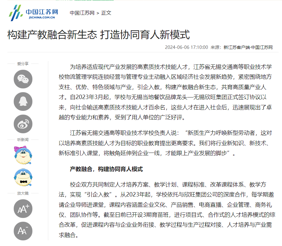 學(xué)習(xí)強(qiáng)國(guó):江蘇無錫:構(gòu)建產(chǎn)教融合新生態(tài) 打造協(xié)同育人新模式