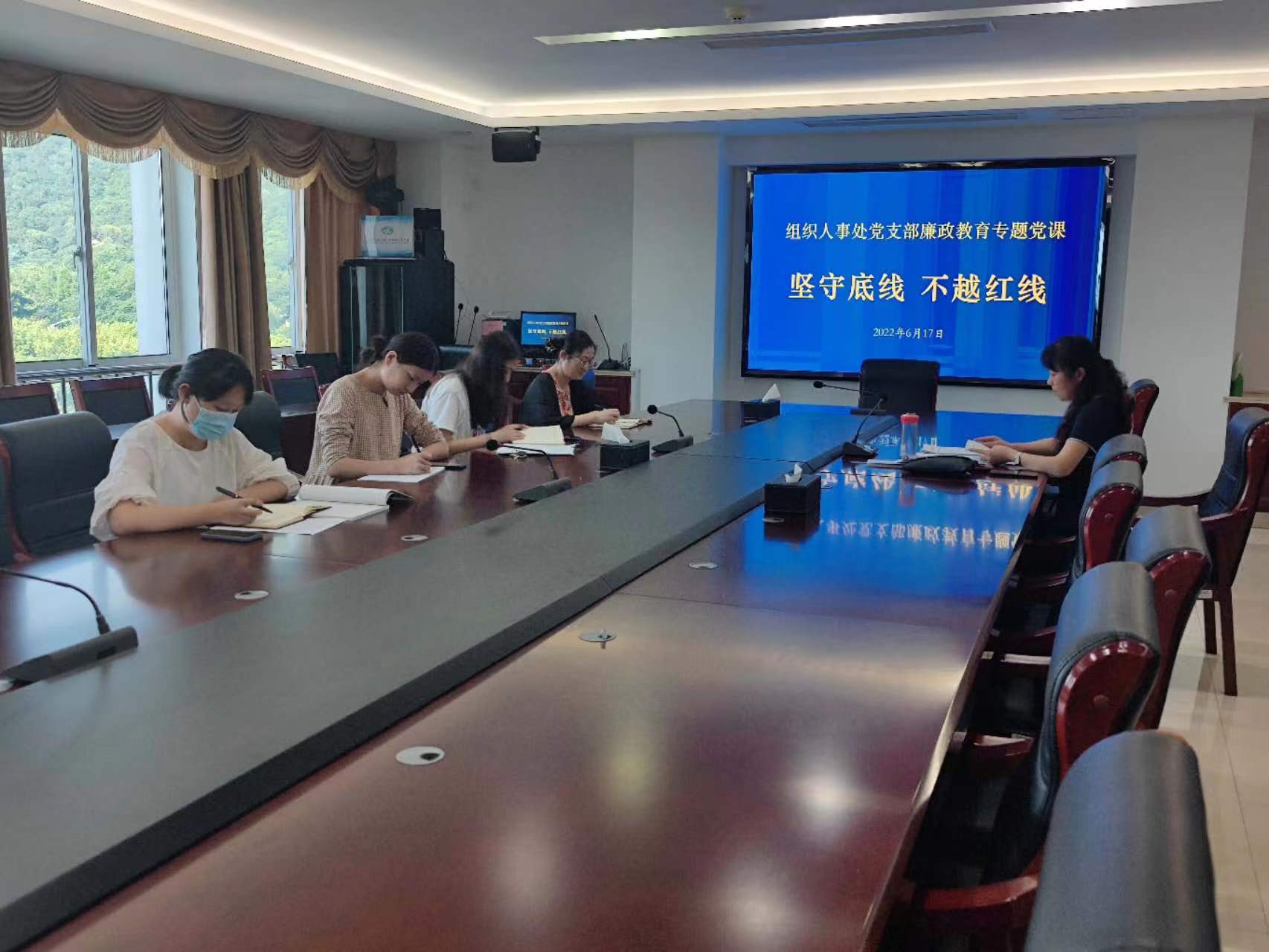 為抓實推進(jìn)廉政警示教育月活動,深入貫徹落實中央八項規(guī)定精神,筑牢黨員干部拒腐防變的思想防線,2022年6月17日,組織人事處黨支部書記邵敏珠為支部全體黨員作了《堅守底線 不越紅線》 廉政專題黨課授課。