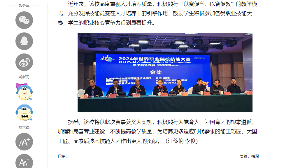 中江網(wǎng):無(wú)錫學(xué)生團(tuán)隊(duì)榮獲2024年世界職業(yè)院校技能大賽爭(zhēng)奪賽城軌運(yùn)營(yíng)與維護(hù)賽項(xiàng)金獎(jiǎng)