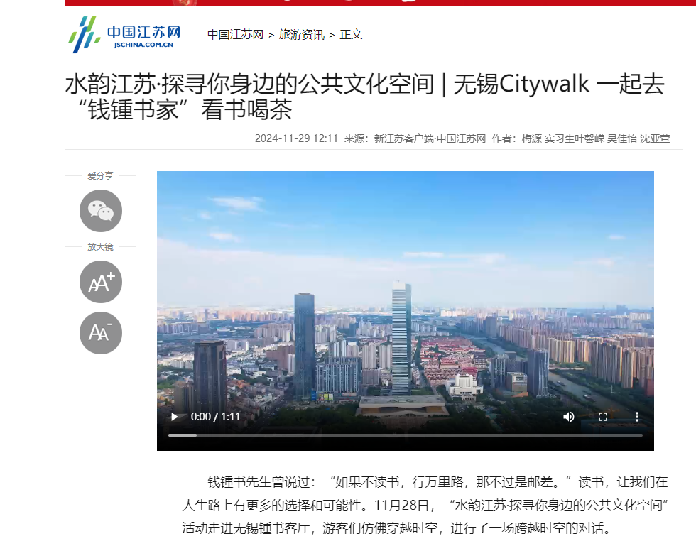 中江網(wǎng):水韻江蘇·探尋你身邊的公共文化空間 | 無錫Citywalk 一起去“錢鍾書家”看書喝茶