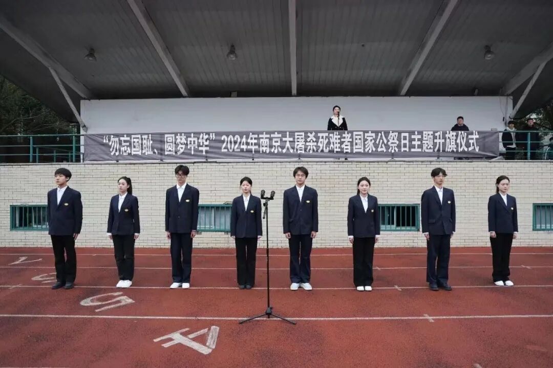 2024年12月13日,學(xué)校師生齊聚操場,舉行“勿忘國恥,圓夢中華”——第11個南京大屠殺死難者國家公祭日主題升旗儀式,引導(dǎo)同學(xué)們銘記歷史,珍惜和平,居安思危,砥礪前行。校黨委委員、副校長王玨出席儀式并講話,全校師生代表1500余人參加了升旗儀式。