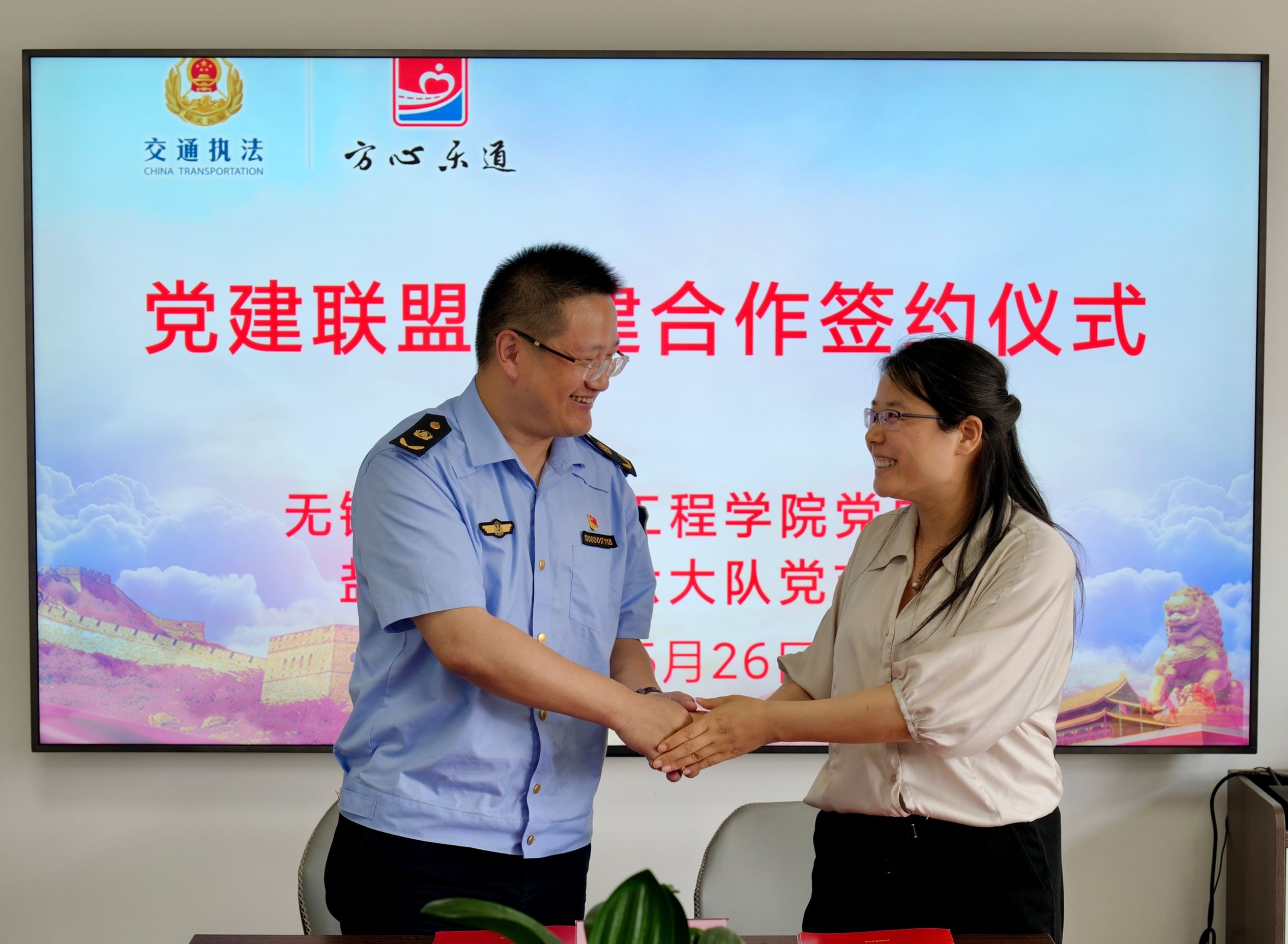 為深化學(xué)校與行業(yè)合作、推動(dòng)黨建與業(yè)務(wù)深度融合,5月26日,交通工程學(xué)院黨總支與鹽錫支隊(duì)第六大隊(duì)黨支部黨建聯(lián)盟共建簽約儀式在鹽錫支隊(duì)第六大隊(duì)會(huì)議室隆重舉行。雙方圍繞“互聯(lián)共建、互助共贏”目標(biāo),共繪黨建引領(lǐng)高質(zhì)量發(fā)展新藍(lán)圖。交通工程學(xué)院院長(zhǎng)趙巧明、黨支部副書(shū)記李俊、鹽錫支隊(duì)副支隊(duì)長(zhǎng)吳賢臣、第六大隊(duì)黨支部書(shū)記兼大隊(duì)長(zhǎng)高俊及雙方黨員代表共同出席儀式。