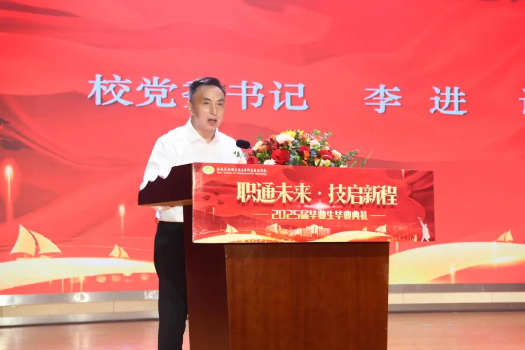 李進(jìn)發(fā)表書記寄語。他對(duì)2025屆畢業(yè)生圓滿完成學(xué)業(yè)順利畢業(yè)表示祝賀,并為畢業(yè)生們送上三點(diǎn)期許,一是要胸懷“國之大者”,做有擔(dān)當(dāng)?shù)慕恍H?;二是要永葆“工匠之心”,做有本領(lǐng)的交校人;三是要恪守“立身之本”,做有品德的交校人。他深情囑托所有畢業(yè)生們帶著在無錫交校鍛造的過硬本領(lǐng)、涵養(yǎng)的優(yōu)良品格、積淀的深厚情誼,自信地走向社會(huì),勇敢地迎接未來。