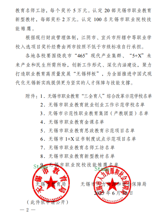 近日,無錫市教育局公布了無錫市職業(yè)教育質(zhì)量提升攀登計(jì)劃2025年度重點(diǎn)項(xiàng)目,我校12個(gè)項(xiàng)目入選、夏夢珍等11名同學(xué)被認(rèn)定為“技能雛鷹”。