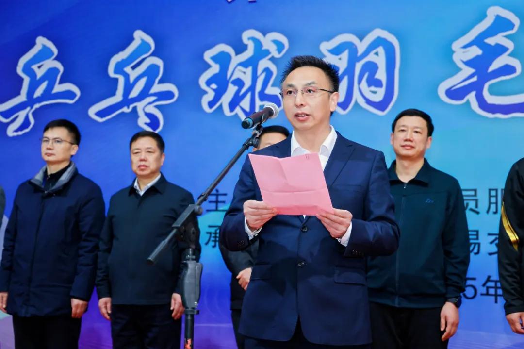 江蘇海事局二級巡視員鄭躍峰在講話中肯定了乒羽聯(lián)賽在促進(jìn)行業(yè)交流、激發(fā)隊(duì)伍活力方面的積極作用,并鼓勵(lì)全體運(yùn)動(dòng)員弘揚(yáng)體育精神,賽出風(fēng)格、賽出水平。