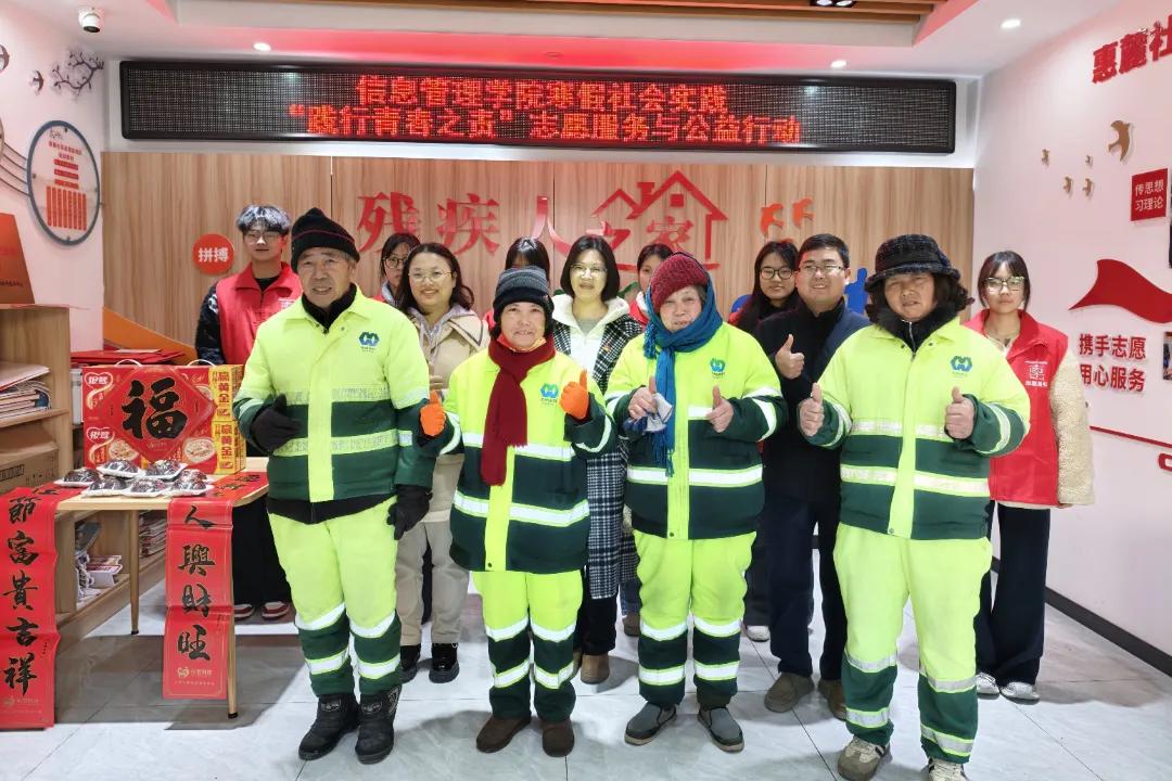 信息管理學(xué)院黨總支書記蔣紅梅、計(jì)算機(jī)技術(shù)教研室黨支部書記朱沛、支部組織委員王得雪,攜手匯潤(rùn)捷公司工作人員以及十余位學(xué)生志愿者,走進(jìn)梁溪區(qū)山北街道惠麓社區(qū),開(kāi)展“黨建引領(lǐng)聚愛(ài)心,寒冬慰問(wèn)顯溫情”公益活動(dòng),為一線環(huán)衛(wèi)工人送上臘八粥、姜茶及新春對(duì)聯(lián),暖意驅(qū)散冬日嚴(yán)寒。